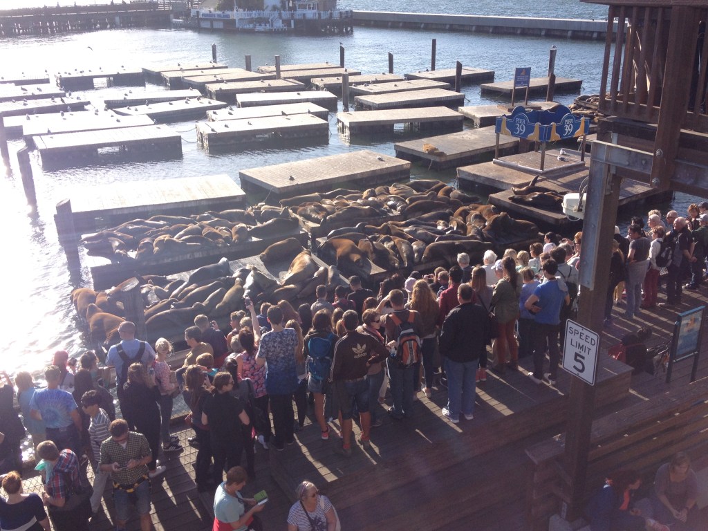 一個人拿著背包客棧給的紙本地圖(20歲鐵齒如我,就是不買網路,但現在近30歲的我是絕對不會做這種事為難自己的),看了高帽秀、騎著腳踏車穿越金門大橋、坐船到惡魔島、在39號碼頭遇上了成群的海狗、望著太平洋吃著龍蝦大餐、路過金門公園音樂祭演出、甚至走累了時,則晃進舊金山市圖書館,找到了本舒國治的《理想的下午》來看。